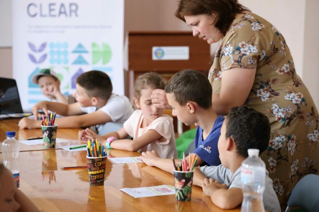 Poshuk Innovatsi began its CLEAR programming by meeting individually with displaced families to show them that they were not alone and to inform them about psychosocial support available to them through CLEAR.  After that, the CBO involved staff of local schools to support the integration of displaced people. Then, they organized a series of creative lab classes for displaced and local children, where they could express their feelings through different activities, such as drawing, painting and sculpting.