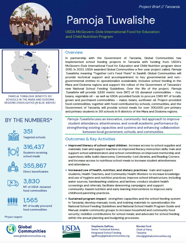 Pamoja Tuwalishe: USDA McGovern-Dole International Food for Education and Child Nutrition Project Brief