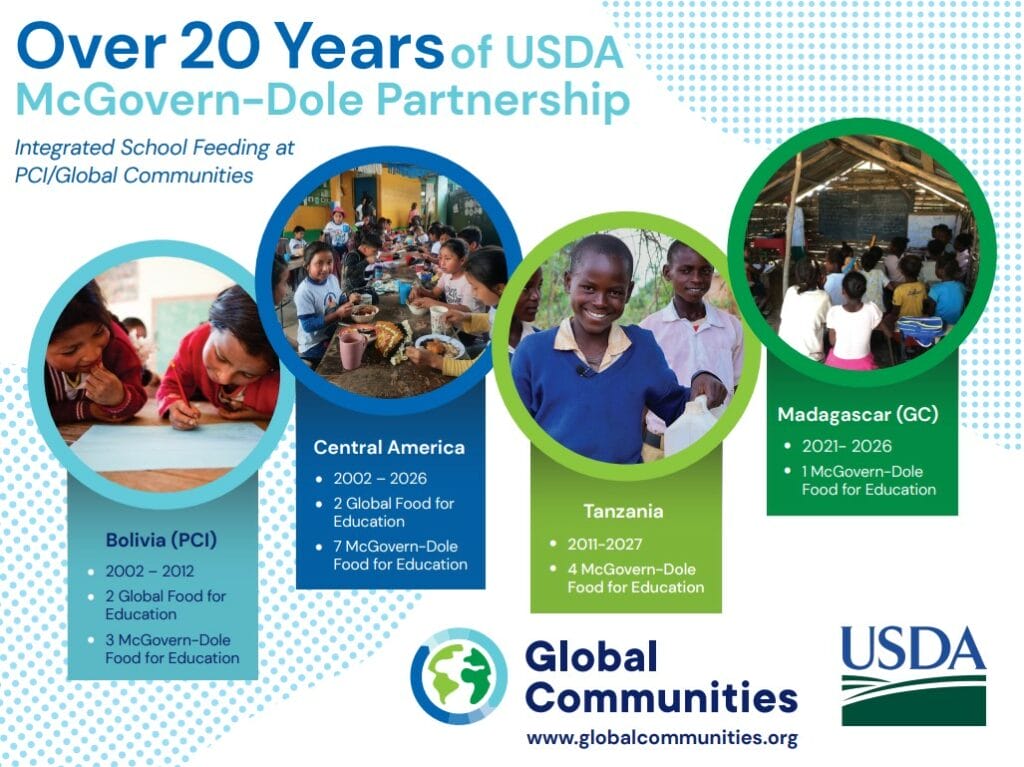 Global Communities hosted an exhibit at the showcase, in celebration of more than 20 years of partnership with USDA. Since 2002, Global Communities has implemented 18 USDA-funded McGovern-Dole International Food for Education and Child Nutrition (McGovern-Dole) programs and three Local and Regional Procurement (LRP) projects spanning five countries. We are now serving more than one million children with daily nutritious meals in over 3,800 schools across the world.