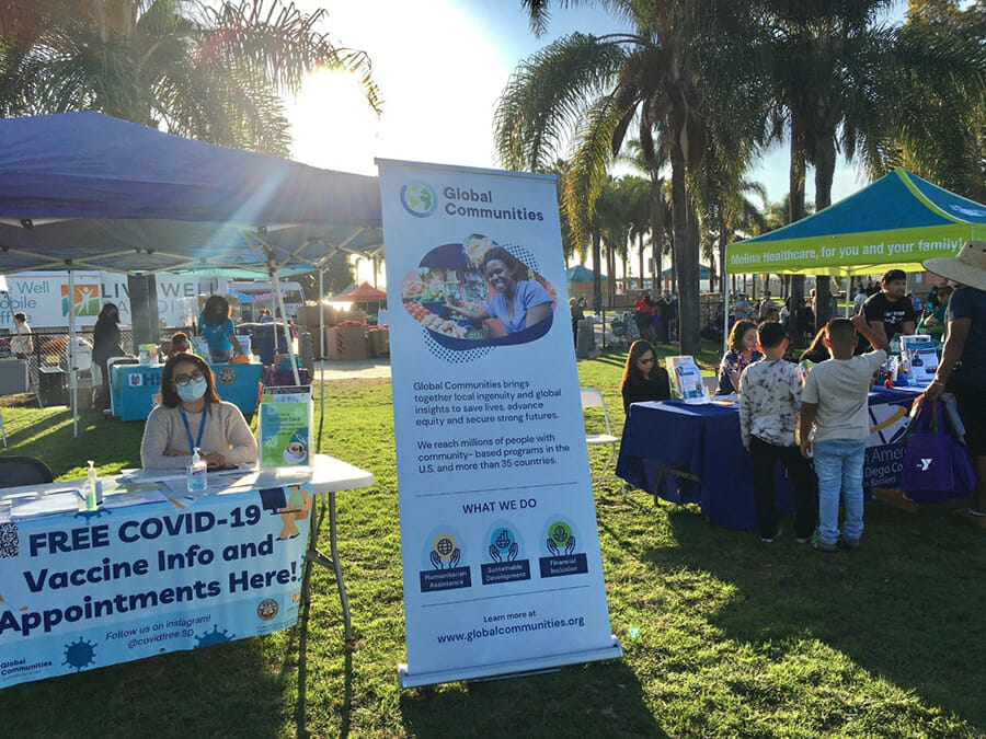 Once the COVID-19 vaccine became available, Global Communities again partnered with the County HHSA in May 2021 to provide vaccine information and services to communities with low vaccination rates. We focused on reaching people who were not accessing vaccine resources in the North and North Central regions of San Diego due to supply-related barriers (e.g., appointment deficits and vaccine stock-outs), demand-related barriers (e.g., mistrust and misinformation) or socioeconomic factors.
