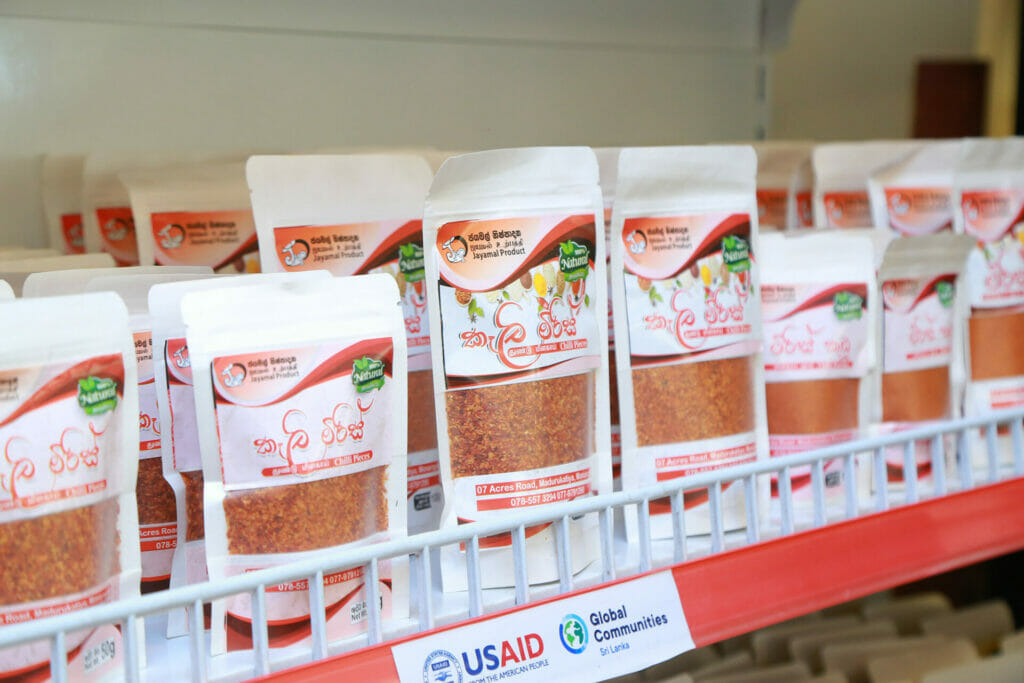 “Four of our members take our products to weekly fairs across the Monaragala District. Now, even the male family members go to the weekly fair and sell our products. We want to go beyond this,” said Ranjani, a member of a women’s collective known as Jayamal Product that produces and sells spices, grains and other products such as flour and jaggery. SCORE provided the collective with the machinery they needed for the production process, along with training to build members’ entrepreneurship skills.